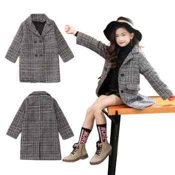 बच्चों के लिए कपड़े कपड़े पहने हुए ऊन ग्रे बच्चों को डबल ब्रेस्टेड जैकेट किशोर बाहर शरद ऋतु के मोटे सर्दियों के कपड़े